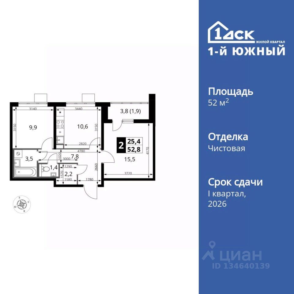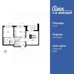 Продаётся 2-к квартира номер 945 общей площадью 52.8 кв.м. на 22-м этаже 24 этажного здания. Чистовая отделка. Цена с учётом скидки.