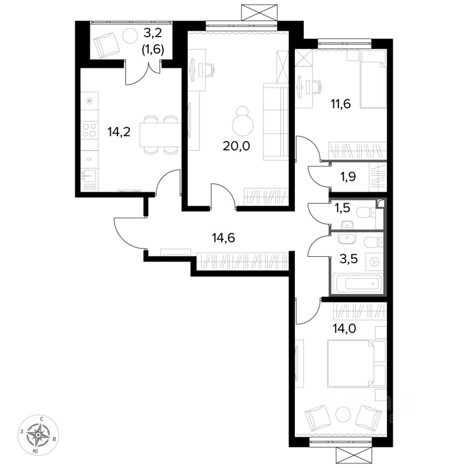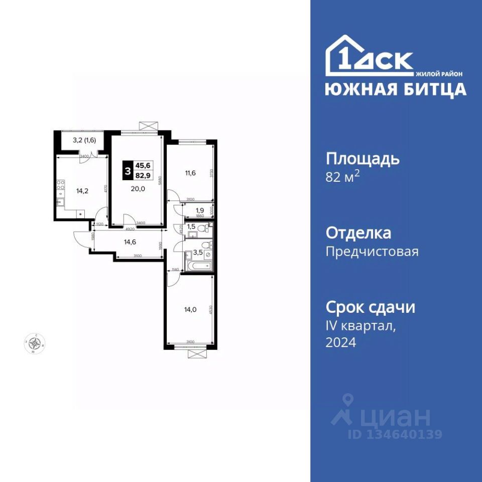 Продаётся 3-к квартира номер 169 общей площадью 82.8 кв.м. на 3-м этаже 22 этажного дома. Отделка Whitebox. Цена с учётом скидки!