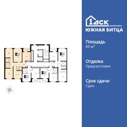 Продаётся 4-к квартира номер 336 общей площадью 89.7 кв.м. на 2-м этаже 23 этажного здания. Отделка Whitebox. Цена с учётом скидки.