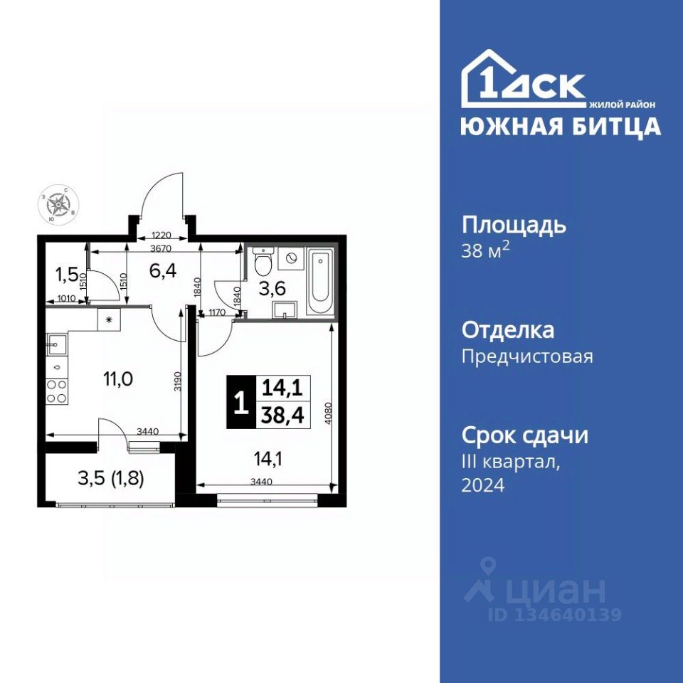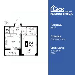 Продаётся 1-к квартира номер 594 общей площадью 38.1 кв.м. на 12-м этаже 24 этажного здания. Отделка Whitebox. Цена с учётом скидки.