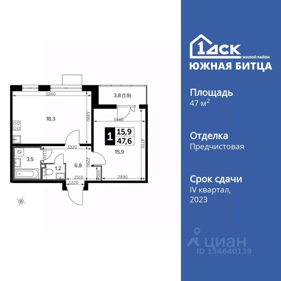 Продаётся 1-к квартира номер 62 общей площадью 47.7 кв.м. на 17-м этаже 20 этажного здания. Отделка Whitebox. Цена с учётом скидки.