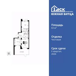 Продаётся 2-к квартира номер 348 общей площадью 63.6 кв.м. на 1-м этаже 22 этажного дома. Чистовая отделка.
