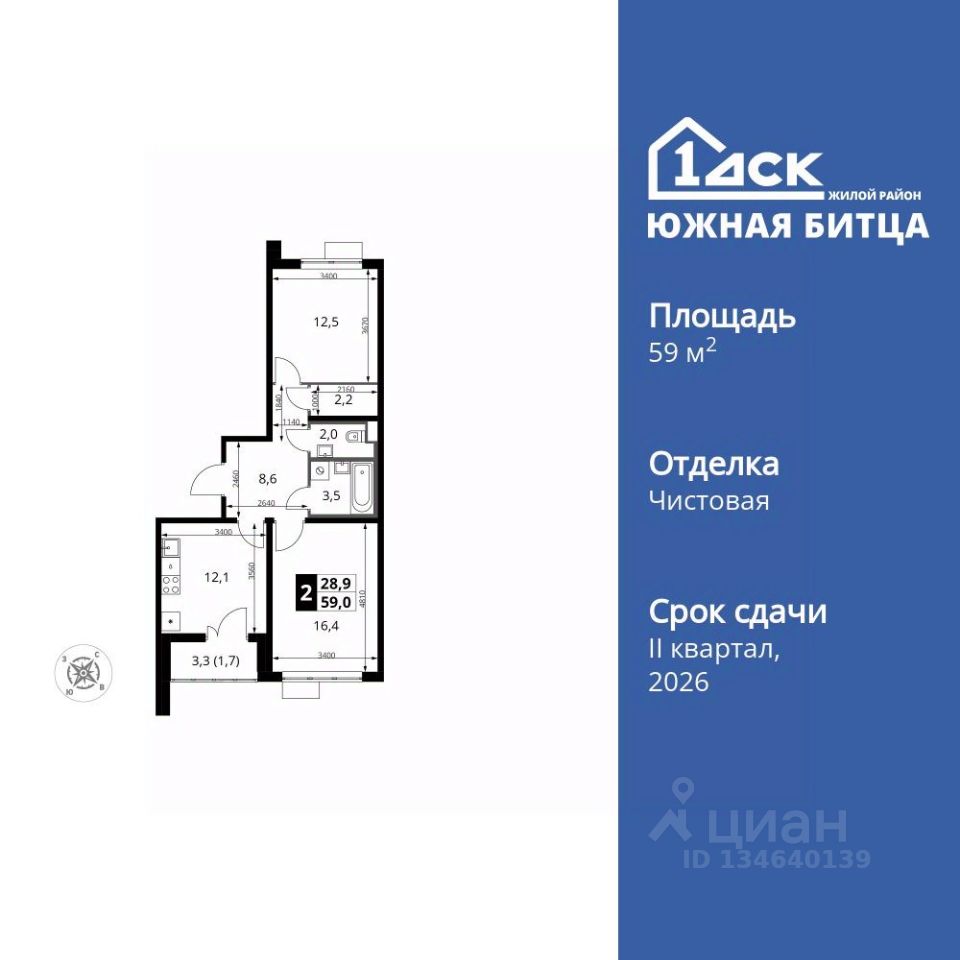Продаётся 2-к квартира номер 372 общей площадью 59 кв.м. на 7-м этаже 22 этажного здания. Чистовая отделка.