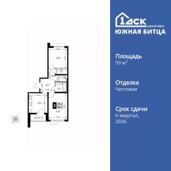 Продаётся 2-к квартира номер 408 общей площадью 59.5 кв.м. на 16-м этаже 22 этажного здания. Чистовая отделка.