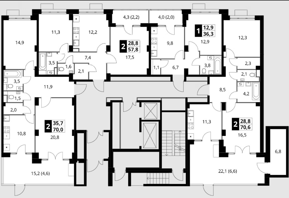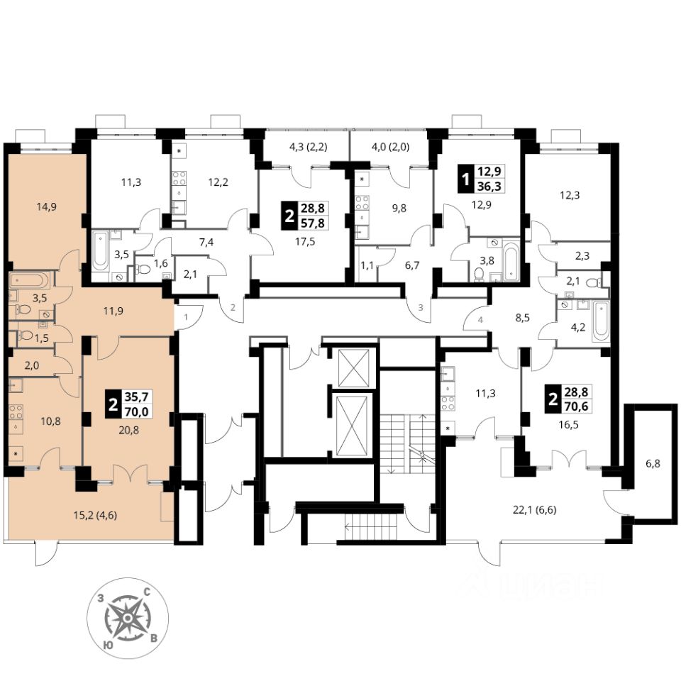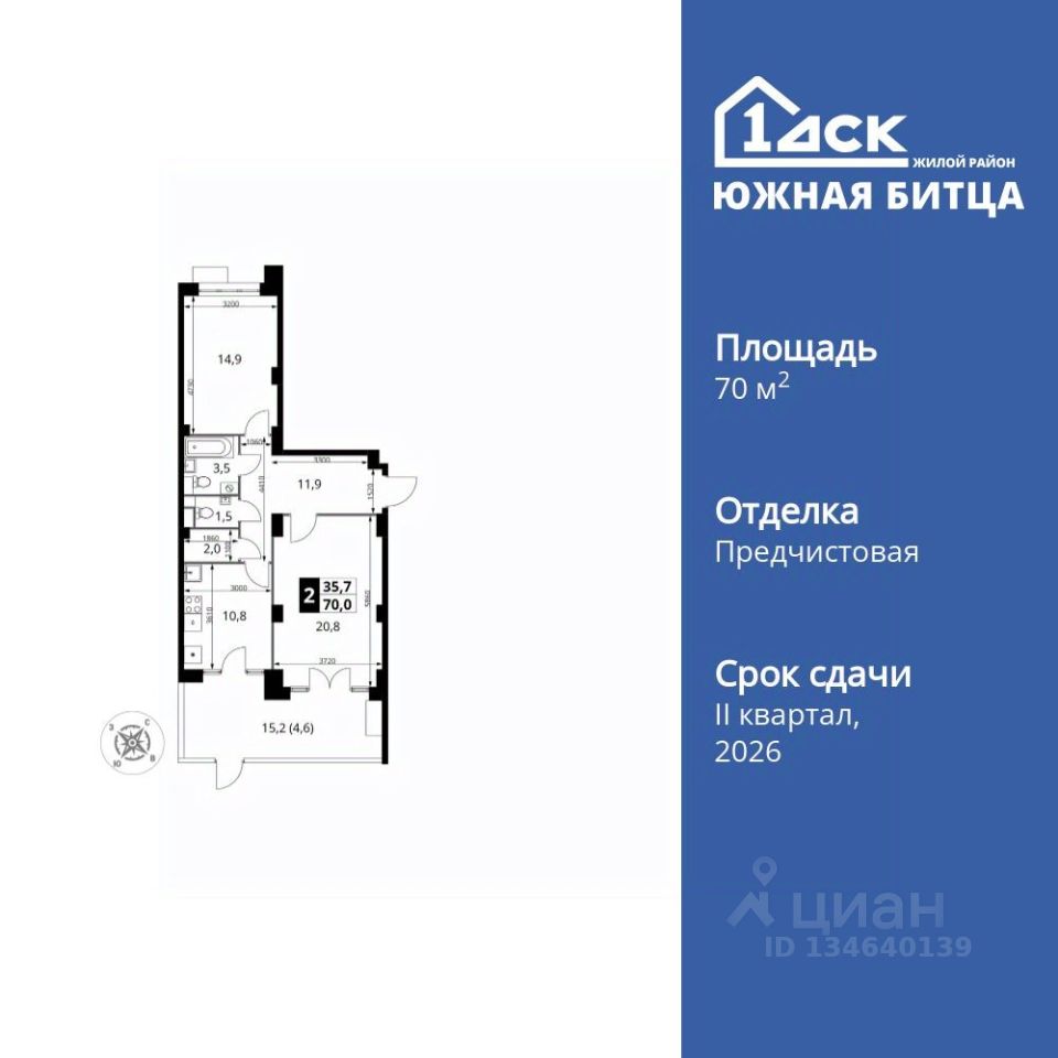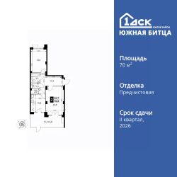 Продаётся 2-к квартира номер 433 общей площадью 70 кв.м. на 1-м этаже 22 этажного дома. Отделка Whitebox.