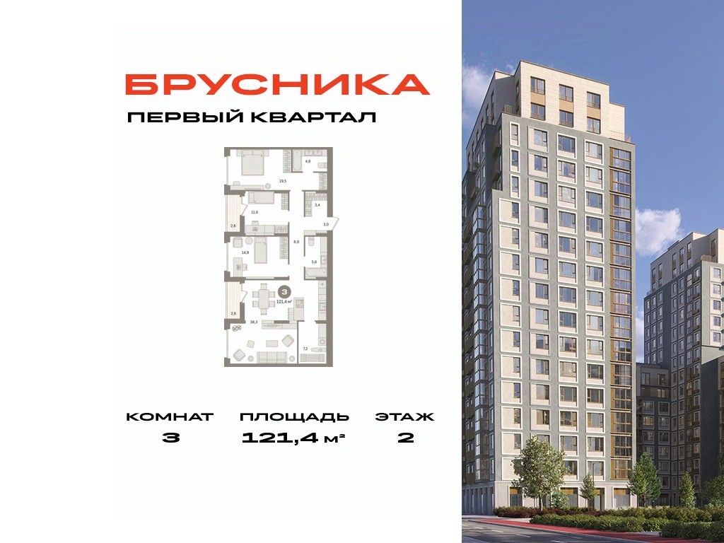 Квартира с кухней-гостиной и тремя спальнями в "Первом квартале". Особенности планировки: гардеробная, рабочий кабинет, вид во двор, лоджия, разнесённые спальни, предчистовая отделка, мастер-спальня, постирочная.