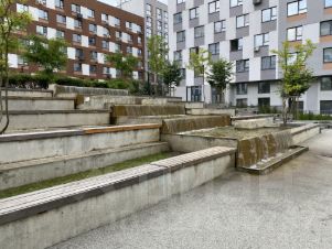 ЖК Первый квартал (Брусника). Дом переменной этажности, седьмой этаж девятиэтажной секции. Закрытый внутренний двор с различными видами активностей для детей.