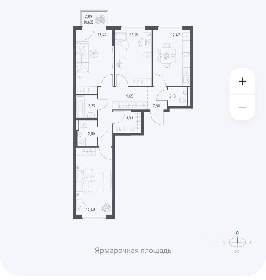 Квартира с функциональной планировкой, изолированными комнатами правильной формы, просторной кухней и двумя санузлами.
