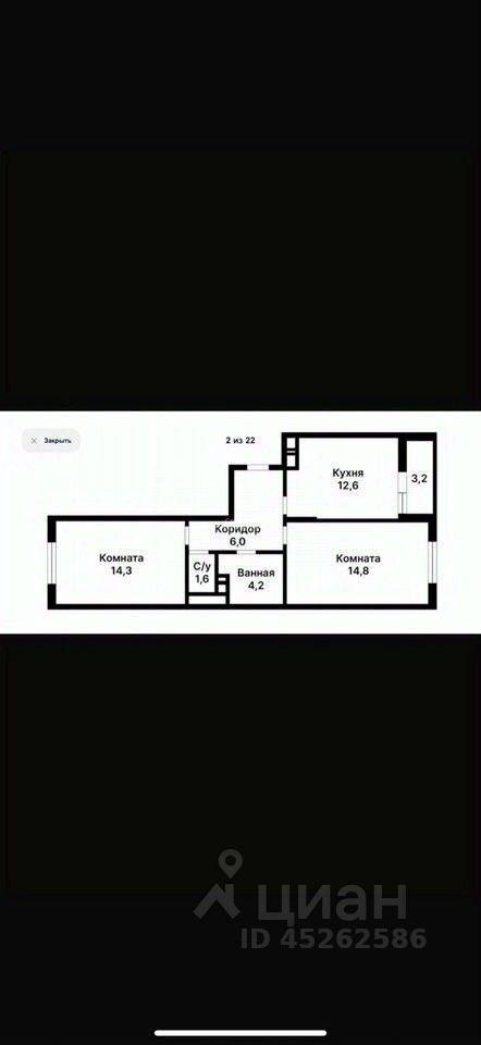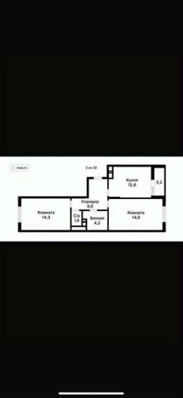 Арт. 113778940 Продаётся двухкомнатная квартира с просторной кухней 12.6 кв.метра и балконом 3.2 кв.метра.