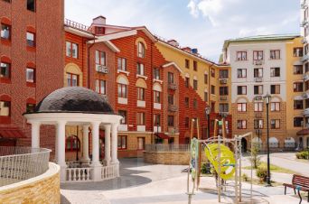 Уникальный квартал с изящными фасадами в стиле классического европейского пригорода по мотивам итальянской архитектуры, где изысканная атмосфера сочетается с продуманным городским пространством. Дворы не на уровне земли, а в несколько уровней, есть где погулять и спокойно детей отпустить.  Территория закрытая, машины не ставят (для них подземный паркинг и подземные межквартальные проезды).