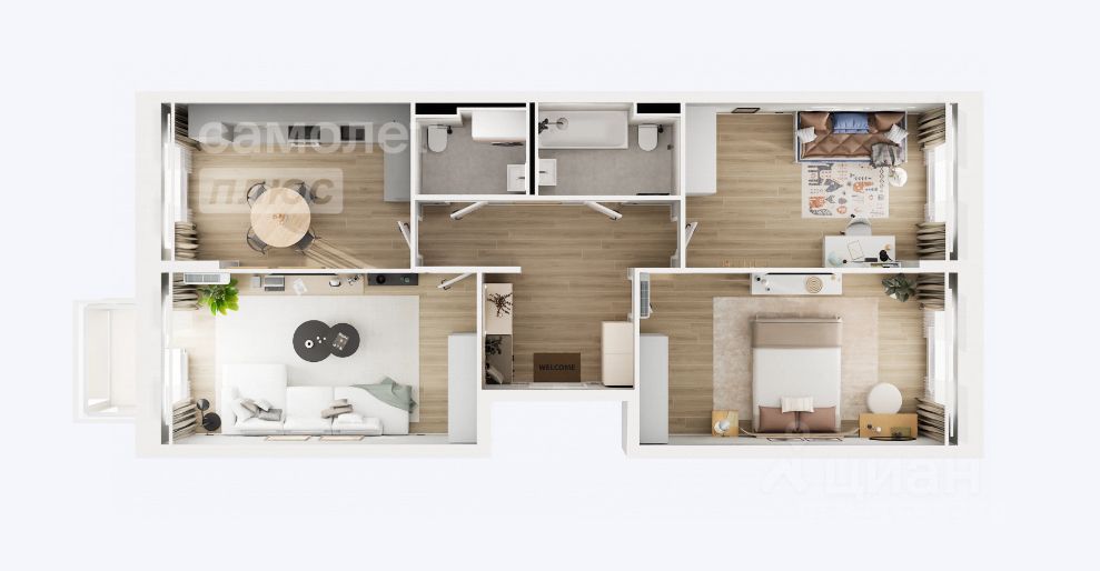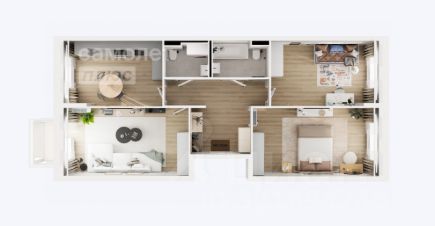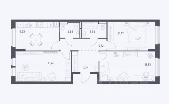 - 3 комнаты от 12, 93 до 17,55 м2;