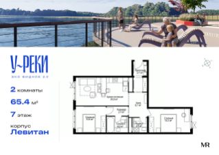 Продаётся 2-комнатная квартира общей площадью 65.40 м² с чистовой отделкой в ЖК "У реки. Эко Видное 2.0" на 7-м этаже 17 этажного корпуса Левитан.