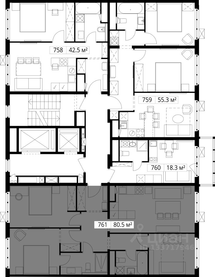 Семнадцатиэтажный корпус "Левитан" состоит из 13 секций, образующих в плане закрытый периметр двора.