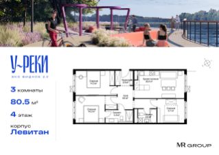 Продаётся 3-комнатная квартира общей площадью 80.50 м² с чистовой отделкой в ЖК "У реки. Эко Видное 2.0" на 4-м этаже 17 этажного корпуса Левитан.