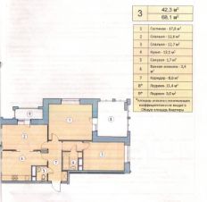3-х комнатная торцевая квартира общей площадью 68,6 кв.м (жилая- 42,3 кв.м) с высокими потолками в новостройке, свободной планировки, с видом на три стороны: Лес, Двор, Улица.