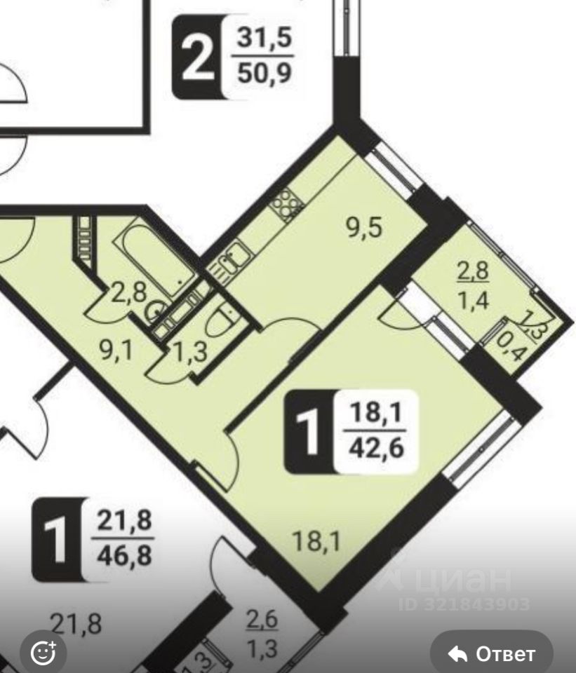 СРОЧНО!!!!Продается уютная однокомнатная квартира в поселке Развилка, Московская область. Общая площадь — 41.5 кв. м, жилая — 18.5 кв. м, кухня — 10 кв. м. Квартира расположена на 12 этаже 22-этажного дома, построенного в 2024 году. Из окон открывается вид во двор, что обеспечит вам тишину и спокойствие.