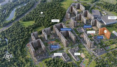 ИНФРАСТРУКТУРА: Подземный паркинг в доме, кладовые помещения. 2 школы, 3 детских сада и собственная поликлиника. Детские и спортивные площадки, дворы без машин. Зоны отдыха и пешеходный бульвар. Рядом большой гипермаркет Лента