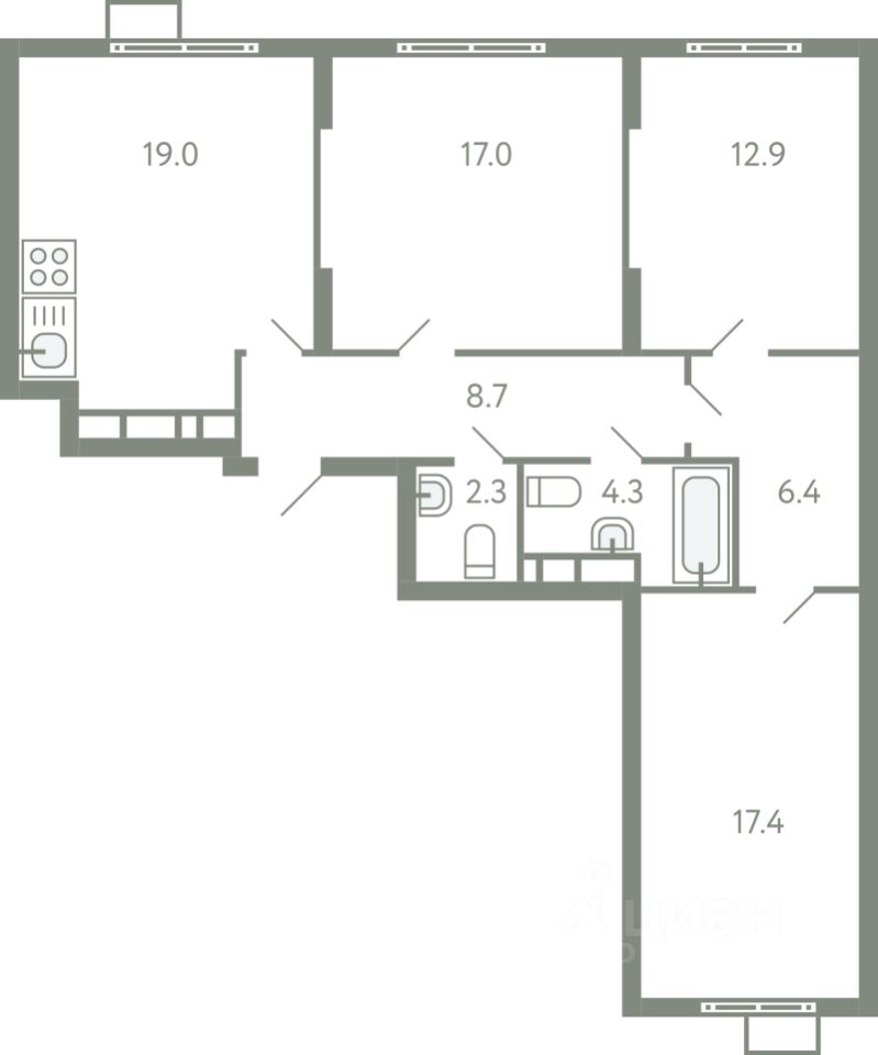 Продаётся 3-комнатная квартира в сданном доме (Ново-Молоковский, 1 (Корпус 13)), срок сдачи: IV-кв. 2024, общей площадью 86.6 кв.м., на 7 этаже. Расположение, транспортная доступность
