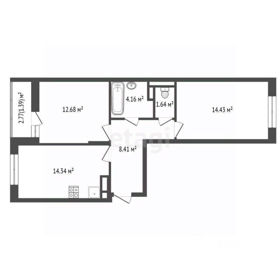- Площадь квартиры по выписке из ЕГРН 54,7 м2;