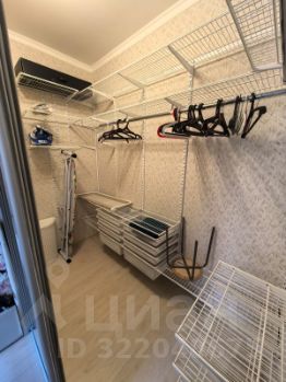 Просторная гардеробная в комнате с удобными полками и выдвижными ящиками — вся одежда будет аккуратно разложена по местам.