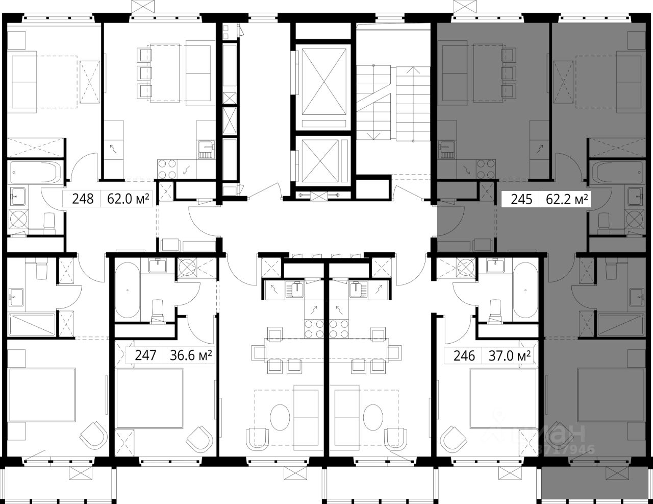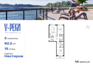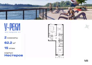 Продаётся 2-комнатная квартира общей площадью 62.20 м² с предчистовой отделкой в ЖК "У реки. Эко Видное 2.0" на 15-м этаже корпуса Нестеров.