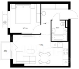 - Кухня — 17,9 кв.м, и