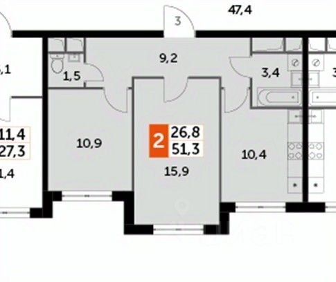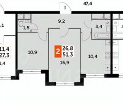 В продаже очень солнечная двухкомнатная квартира 51,3 кв.м. окнами на Восток в ЖК Римский.