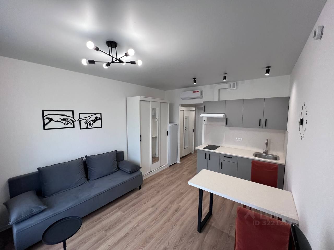 Бытовaя техника и удобства: cтиpaльнaя мaшинa, кондиционер, xoлодильник, вытяжка, вaрoчнaя пaнель, диван Аскона, два вместительных шкафа, душевая кабина.