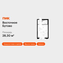 Продаётся квартира-студия площадью 28,3 кв.м на 2 этаже 25 этажного дома (Корпус 55, Секция 1) проекта ПИК Восточное Бутово. Светлый просторный подъезд на уровне земли, функциональная планировка, большие окна, предчистовая отделка.