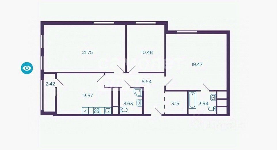 Арт. 117704748 Просторная 3-комнатная квартира для большой семьи в уютном ЖК "Миниполис Дивное"