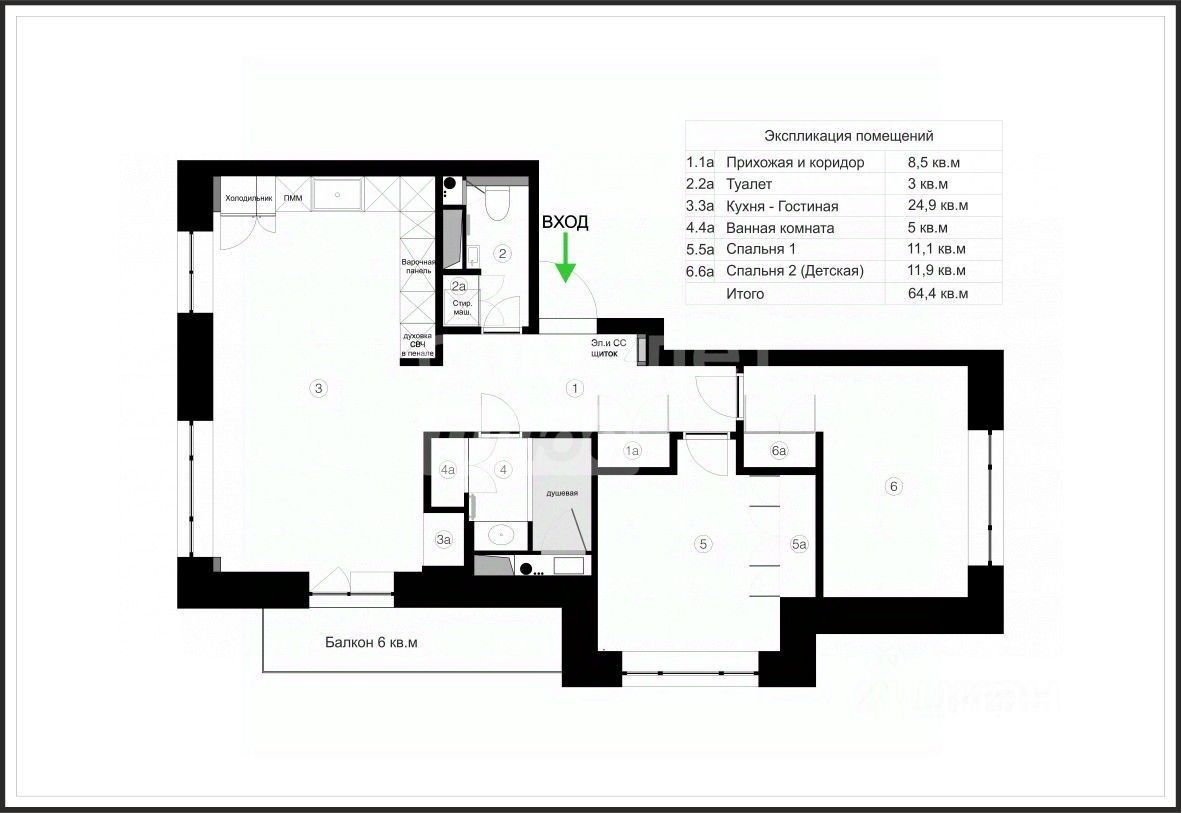 Дополнительный комфорт: теплые полы на кухне и в санузлах, высокие потолки, тройные стеклопакеты.