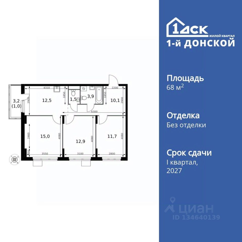 Продаётся 3-к квартира номер 496 общей площадью 68.6 кв.м. на 22-м этаже 24 этажного здания. Без отделки.
