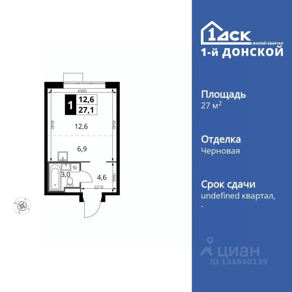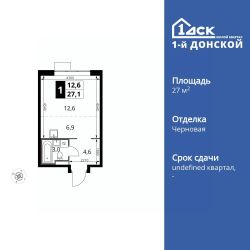 Продаётся 1-к квартира номер 81 общей площадью 27.1 кв.м. на 9-м этаже 24 этажного дома. Отделка Whitebox.