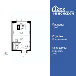 Продаётся квартира-студия номер 81 общей площадью 27.1 кв.м. на 9-м этаже 24 этажного здания. Отделка Whitebox.