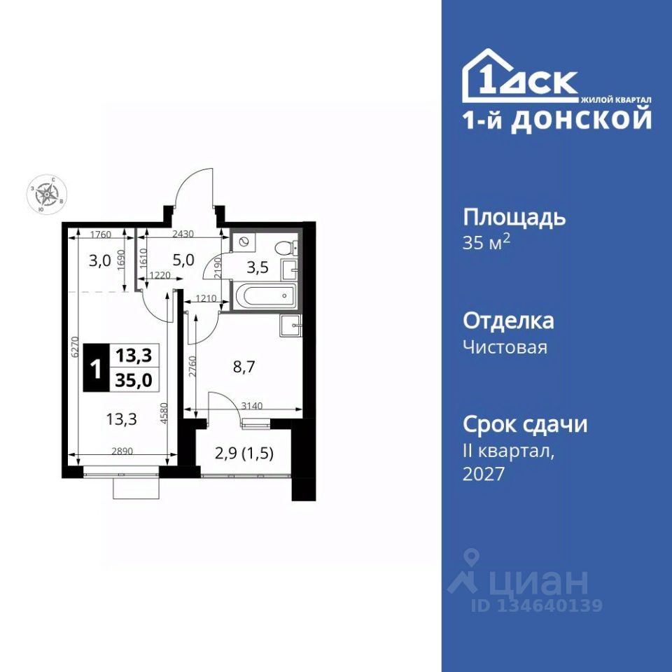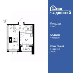 Продаётся 1-к квартира номер 394 общей площадью 35 кв.м. на 16-м этаже 24 этажного здания. Чистовая отделка.