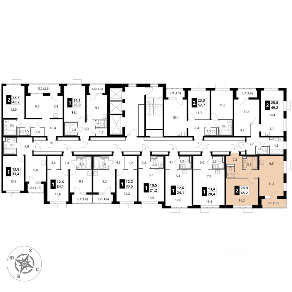Продаётся 2-к квартира номер 541 общей площадью 48.2 кв.м. на 7-м этаже 24 этажного дома. Отделка Whitebox.