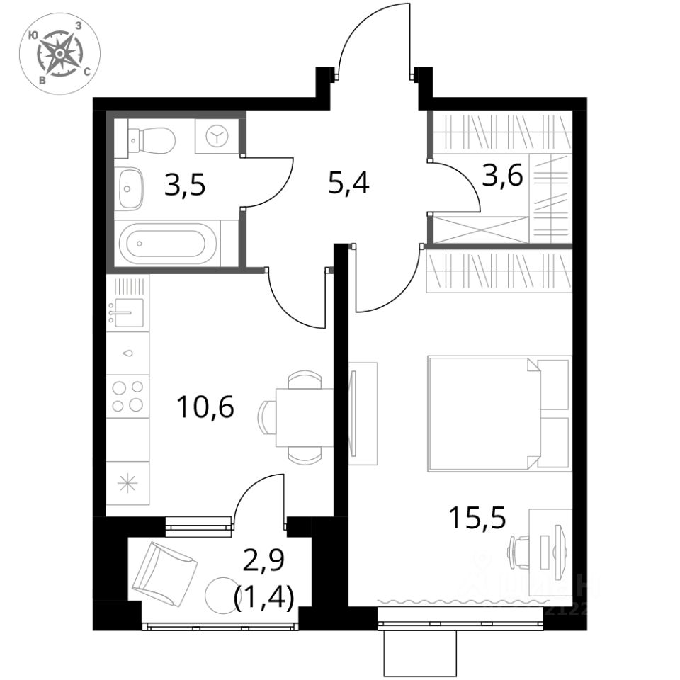 Продаётся 1-к квартира номер 351 общей площадью 40 кв.м. на 12-м этаже 24 этажного дома. Отделка Whitebox.