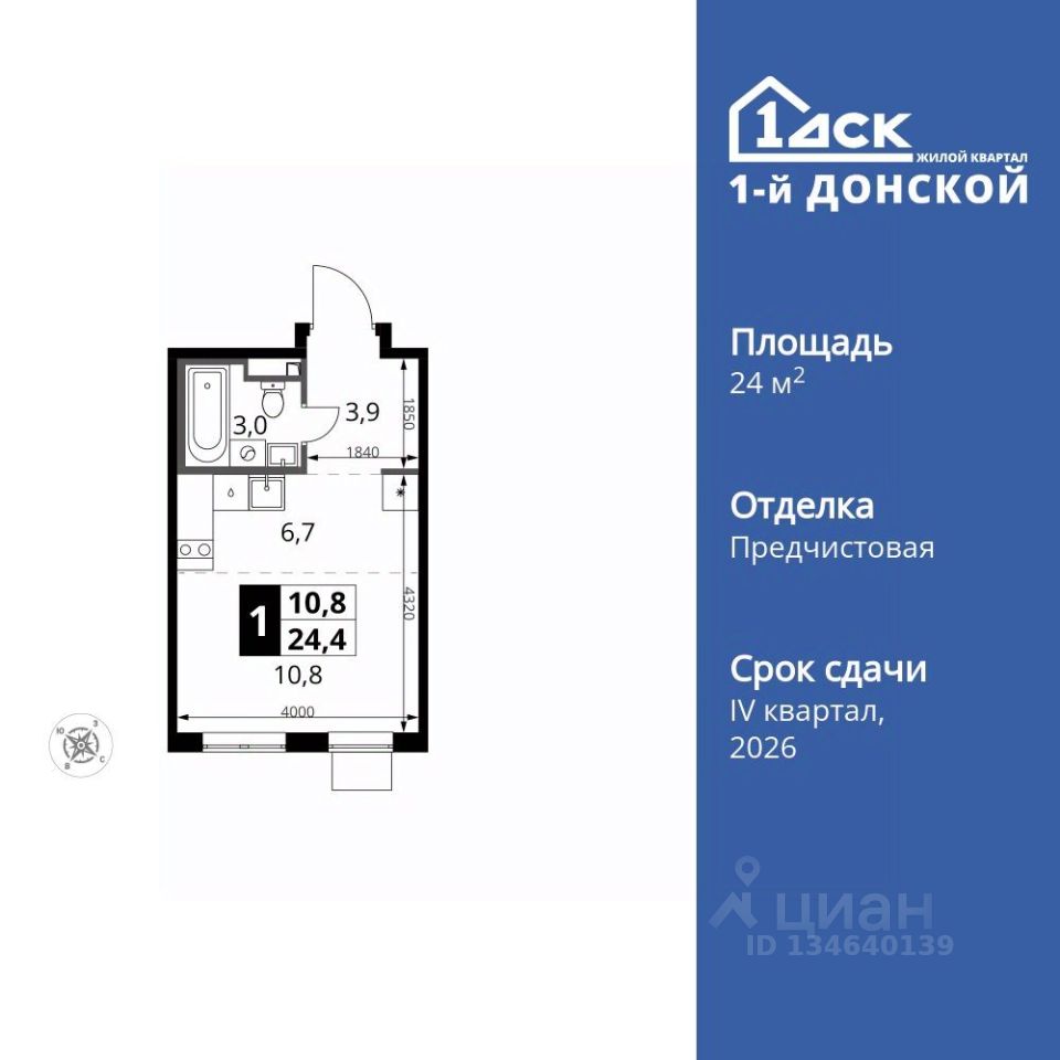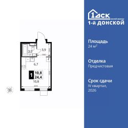Продаётся квартира-студия номер 686 общей площадью 24.4 кв.м. на 24-м этаже 24 этажного здания. Отделка Whitebox.