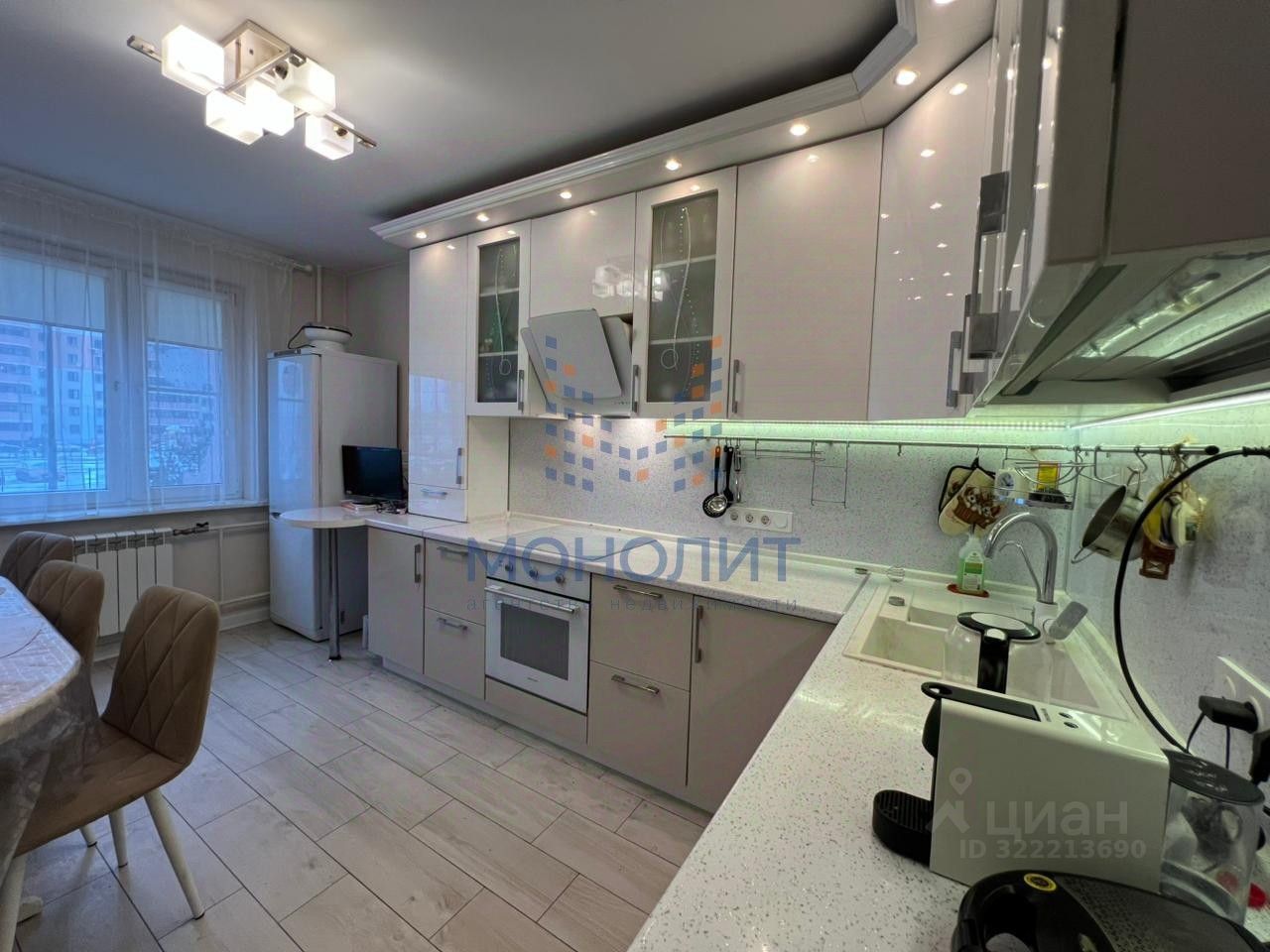 Продаётся с кухонным гарнитуром, техникой и мебелью.