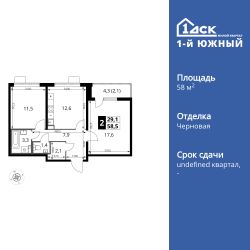 Продаётся 2-к квартира номер 118 общей площадью 58.5 кв.м. на 7-м этаже 25 этажного дома. Отделка Whitebox. Цена с учётом скидки!