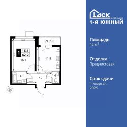 Продаётся 1-к квартира номер 42 общей площадью 42.1 кв.м. на 12-м этаже 24 этажного здания. Отделка Whitebox. Цена с учётом скидки.