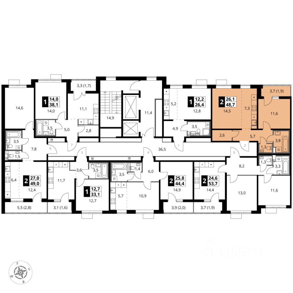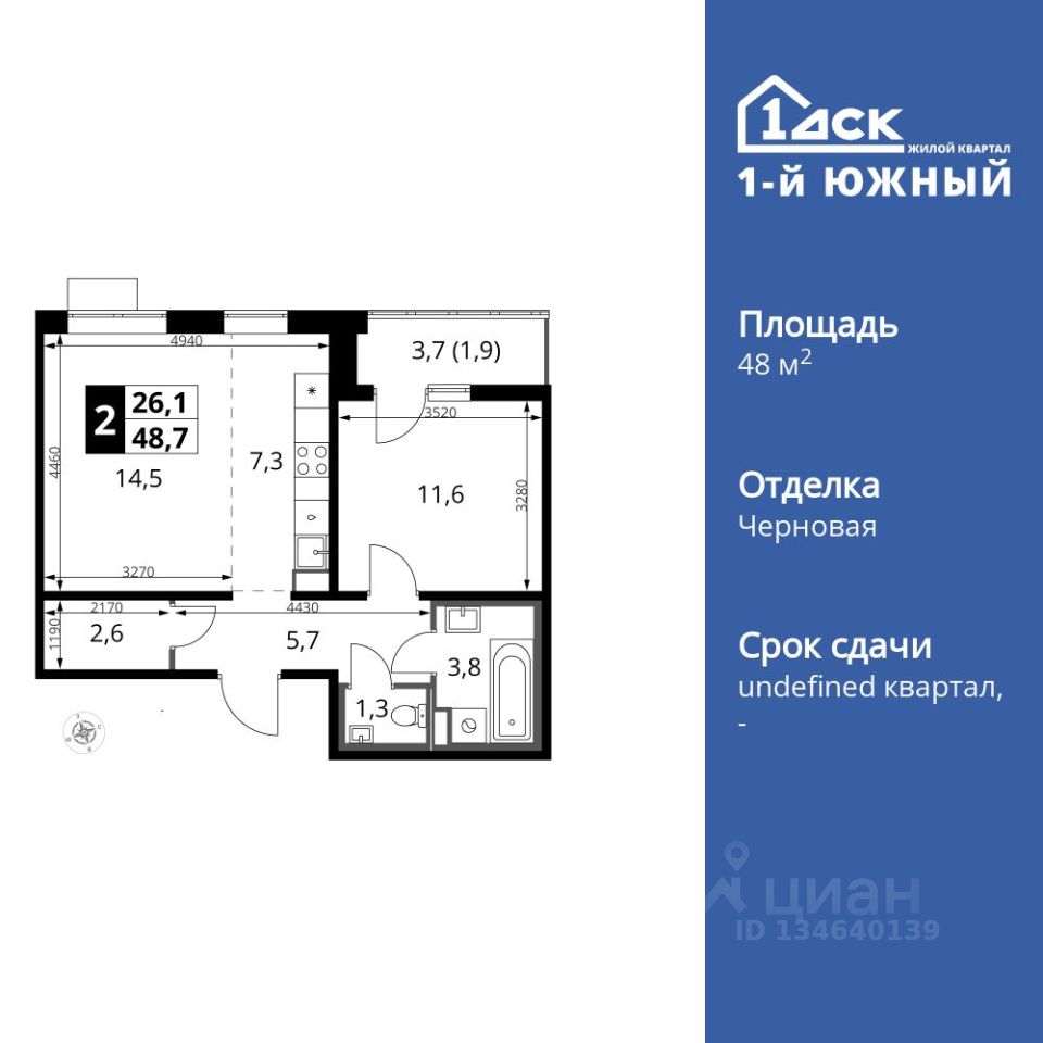 Продаётся 2-к квартира номер 341 общей площадью 48.7 кв.м. на 11-м этаже 24 этажного дома. Отделка Whitebox.