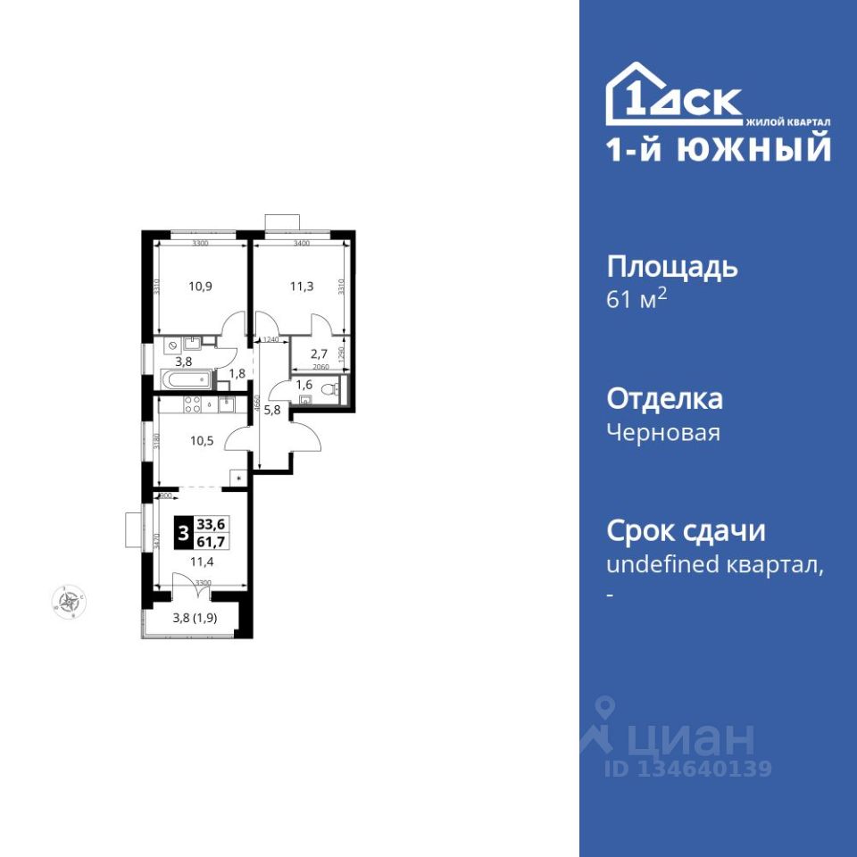 Продаётся 3-к квартира номер 730 общей площадью 61.7 кв.м. на 9-м этаже 24 этажного дома. Отделка Whitebox.