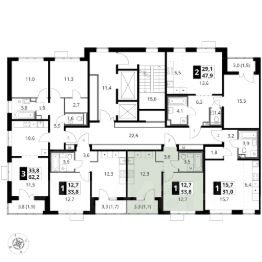 Продаётся 1-к квартира номер 738 общей площадью 33.8 кв.м. на 11-м этаже 24 этажного дома. Отделка Whitebox.