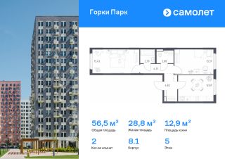 Предлагается 2-комнатная квартира комфорт-класса 56,47 кв.м в корпусе 8.1 на 5 этаже, в ЖК "Горки Парк"