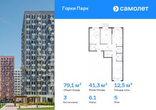 Предлагается 3-комнатная квартира комфорт-класса 79,09 кв.м в корпусе 6.1 на 5 этаже, в ЖК "Горки Парк"