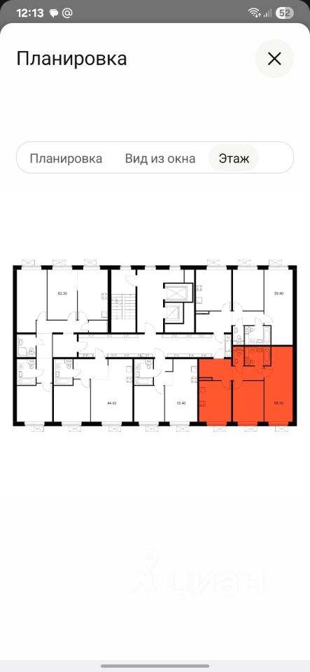 Продается уютная 2-комнатная квартира в новом доме 2023 года постройки по адресу: Московская область, Ленинский городской округ, посёлок городского типа Боброво, Лесная улица, 16к1. Общая площадь квартиры — 58,1 кв. м, жилая площадь — 30 кв. м, кухня — 12 кв. м. Квартира находится на 10 этаже 17-этажного дома. Высота потолков составляет 2,62 метра, окна выходят на школу. Балконов нет.