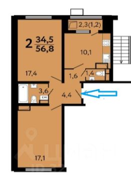 56,8 м²