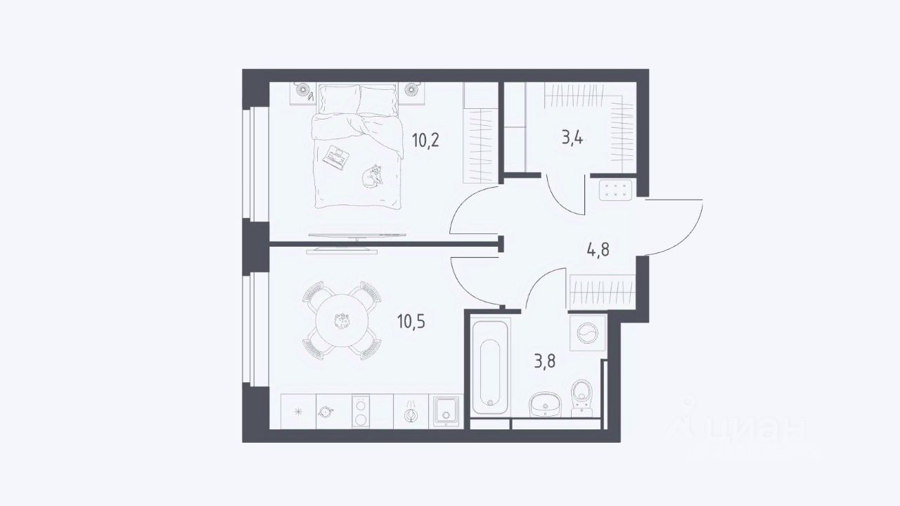 - Спальня 10,2 кв.м. для полноценного отдыха после рабочего дня;