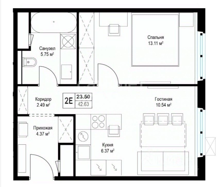 Общая площадь квартиры 42.8 метров, уютная спальня 13 метров, функциональная гостинная 11 метров, объединенная с кухней 6 метров, просторный Санузел 5,8 метров, и правильная прихожая 4,5 метров. Квартира с чистовой отделкой, вам осталось определиться с цветовой гаммой. Стены готовы под обои, разведена сантехника, электрика, залиты полы. Стеклопакеты с повышенной звукоизоляцией. Теплоизоляционные материалы в наружных стенах. Короба для кондиционеров, 2 лифта и помещение для консьержа в каждом подъезде.